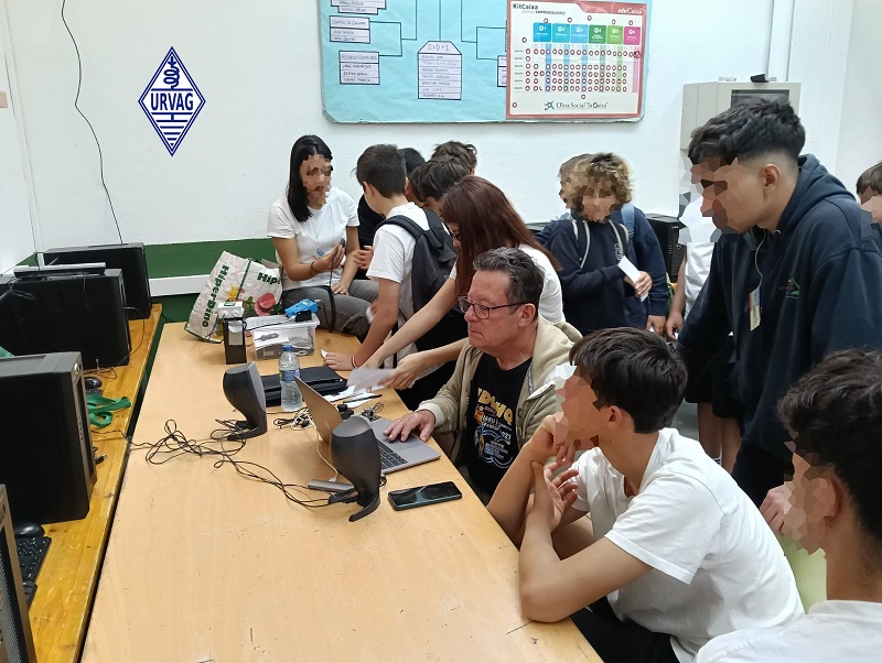 Como en otras ocasiones, algunos de nuestros socios se desplazaron al IES Santa Ana con el fin de colaborar en las citadas actividades, durante las que dieron algunas charlas en torno a la operativa de los equipos de radioaficionado y los modos de comunicación utilizados y que se complementaron con la realización, por parte de los propios alumnos, de diversos contactos a través de los equipos que se instalaron a tal efecto.