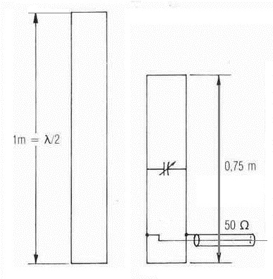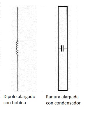Si cortáis la antena DDRR por un plano horizontal y también por un plano vertical, descubriréis otra extraña antena que aparece en los libros, pues también es una antena de ranura sintonizada por medio de un condensador y, por tanto, radia con polarización vertical.