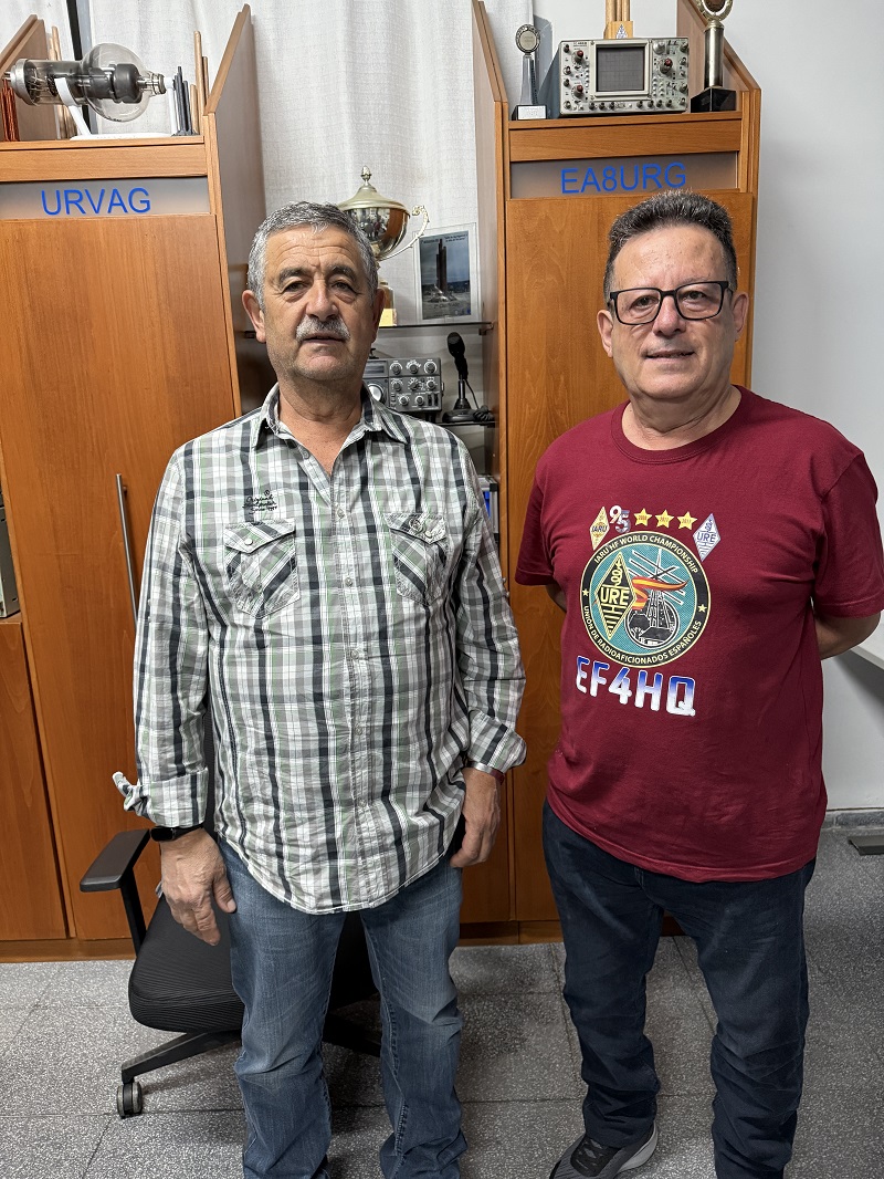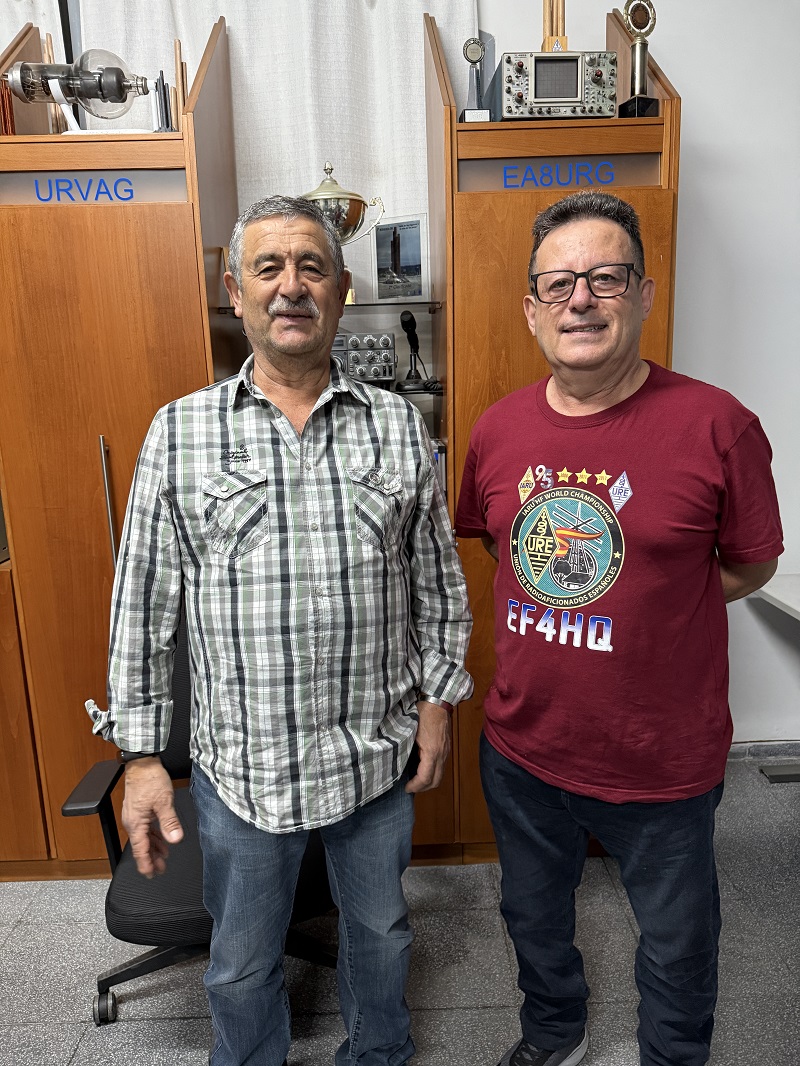 En las fotografías podemos ver a nuestro compañero José Antonio junto al presidente de nuestra Sección (Luis, EA8A) tras la entrega del botón de plata.